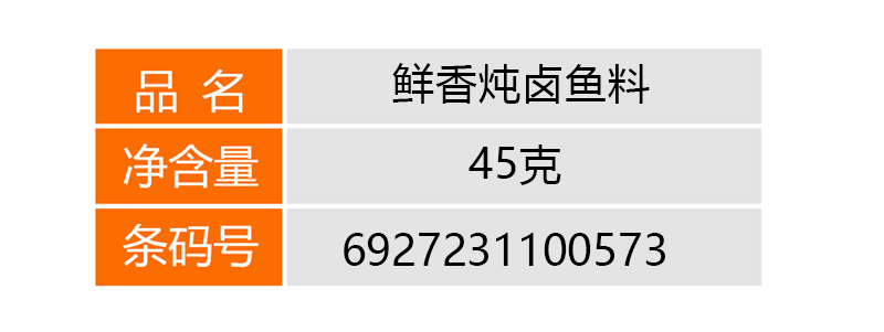 鮮香燉鹵魚料 首頁 > 產品展示 > 燉料系列 > 鮮香燉鹵魚料