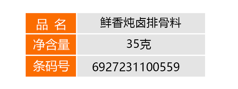 鮮香燉鹵排骨料 首頁 > 產品展示 > 燉料系列 > 鮮香燉鹵排骨料