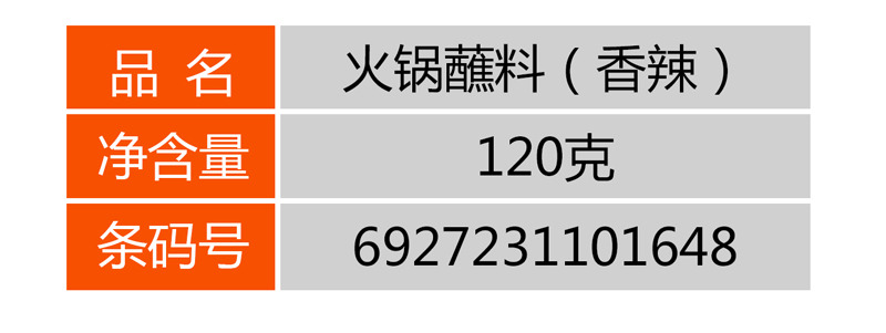 火鍋蘸料(香辣) 首頁 > 產品展示 > 火鍋系列 > 火鍋蘸料(香辣)
